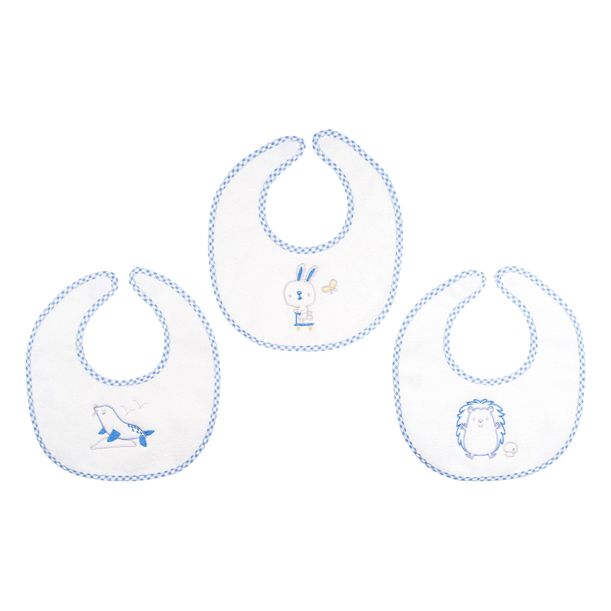 Σαλιάρα πετσετέ με ρέλι και κέντημα, σιέλ
