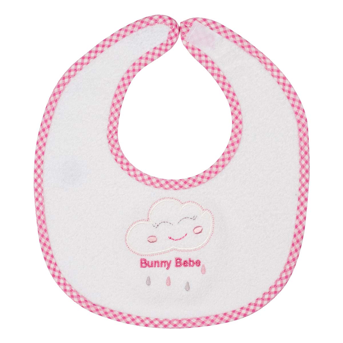 Σαλιάρες πλαστικοποιημένης πετσέτας, λευκές με χρωματιστό ρέλι και κέντημα, με αυτοκόλλητη ταινία velcro.
