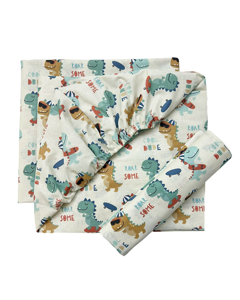 Σεντόνια κούνιας σετ 3τμχ με λάστιχο, Dino, εκρού